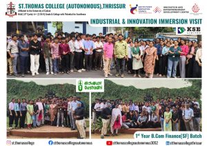 The Department of Commerce (SF), St. Thomas College (Autonomous), Thrissur, under IIC & IEDC, & SIP, organized an Industrial & Innovation Immersion Visit on 06 January 2026 to Oushadhi, Thrissur and KSE Limited, Irinjalakuda. The visit showcased innovation-driven operations enhancing efficiency, quality, and sustainability across public and private enterprises.
