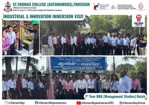 The Department of Mangement Studies, St. Thomas College (Autonomous), Thrissur organized an Industrial & Innovation Immersion Visit under SIP for the 1st Year BBA students to Malabar Cements Ltd, Wakayar and Aavin, Coimbatore District Co-op Milk Producers Union Ltd. on January 12th, 2026, fostering innovation, industry exposure, and experiential learning.