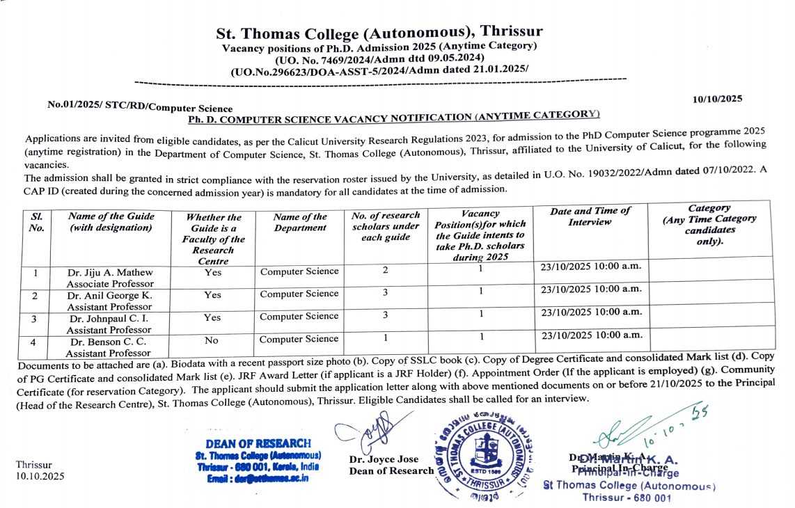 - Vacancy List Department of Computer Science 10/10/2025 (any time category)