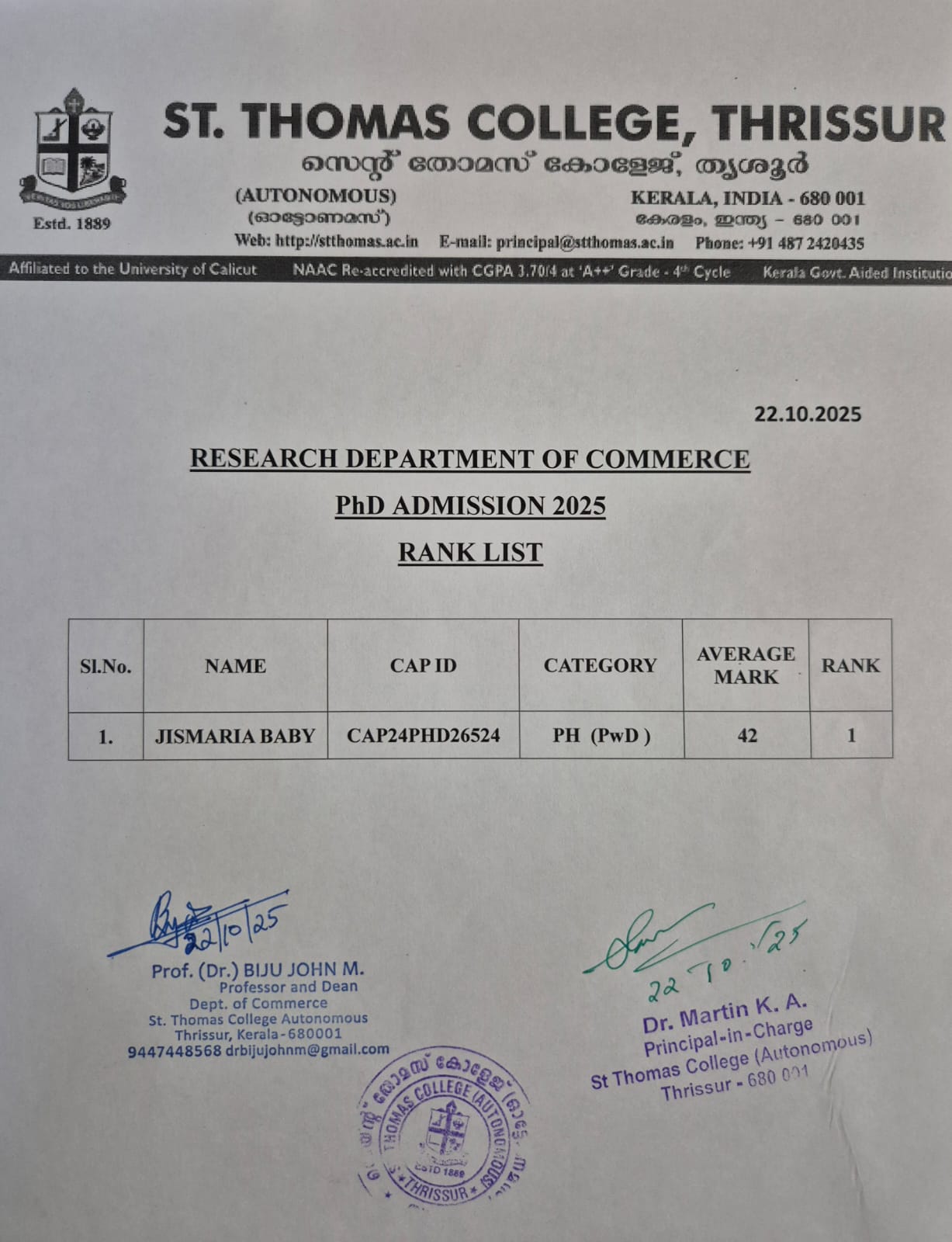 Connect with us! +91 487 2420 435 | principal@stthomas.ac.in