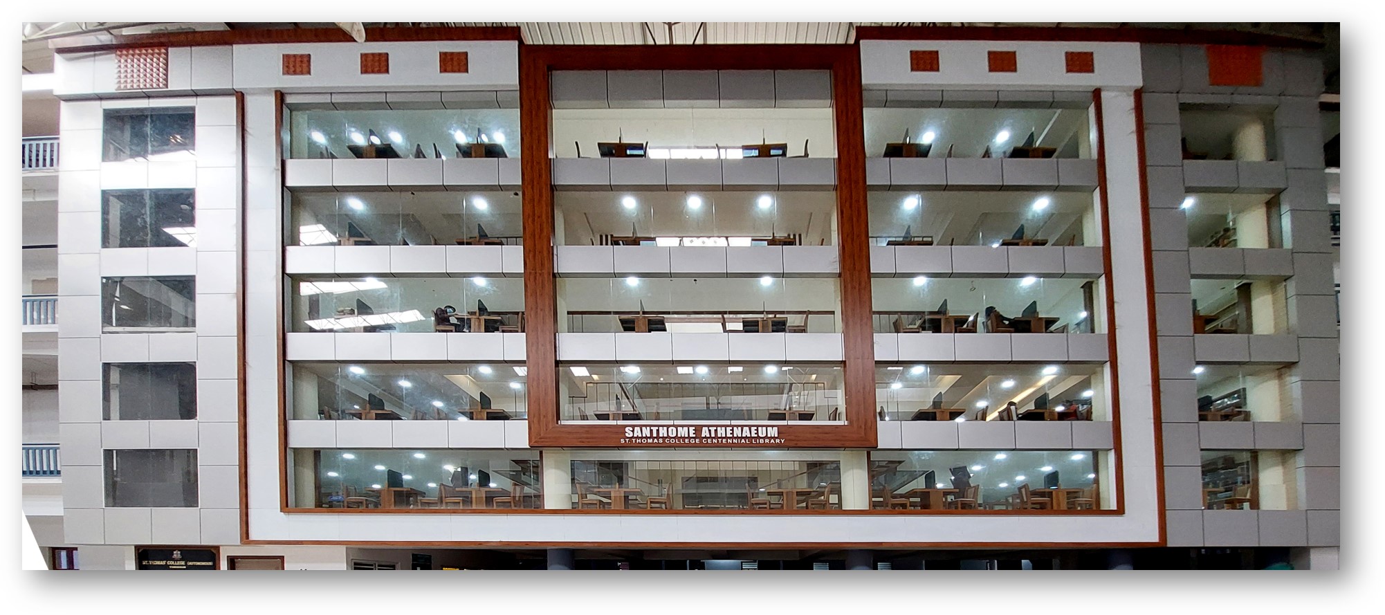 St. Thomas College Library (Santhome Athenaeum) is one of the largest and oldest college libraries in Kerala and houses about a hundred thousand books in print. The college library is meant for supplementing the academic, intellectual, informational, inspirational, spiritual and recreational requirements of the academia with its rich resources and services.